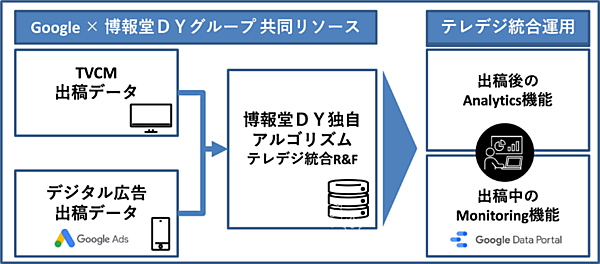 総合メディア事業の博報堂DYメディアパートナーズは、テレビとデジタル(テレデジ)の広告を統合管理して効果的・効率的な広告運用を支援するソリューション「Tele-digi AaaS」の機能を強化したサービスを始める、と12月13日発表した。Googleが保有するツール・データと連携し、博報堂DYメディアパートナーズの独自のアルゴリズムを組み合わせる。