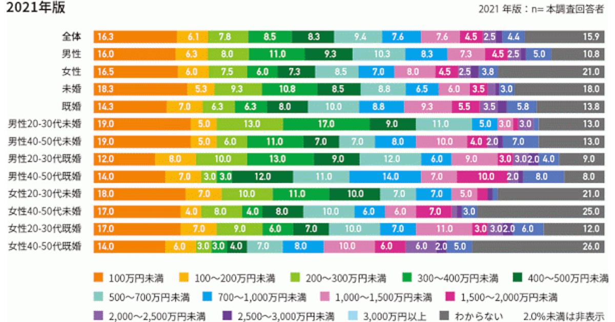 アスマークは「収入と貯蓄に関する調査(2021年)」の結果を発表した。2015年に公開した「収入と支出に関するアンケート調査」から収入・貯蓄に関する項目をピックアップして、2021年版として調査を実施し比較を行っている。回答サンプル数は800人。