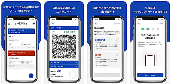 新型コロナワクチン接種証明書は、日本の予防接種法に基づいて各市区町村で実施された新型コロナワクチン接種の事実を公的に証明する「デジタル証明書」。氏名や生年月日、接種記録(ワクチンの種類、接種年月日、ロット番号など)が記載され、海外用ではパスポートの国籍や旅券番号が記載される。アプリを起動すればいつでも表示する。