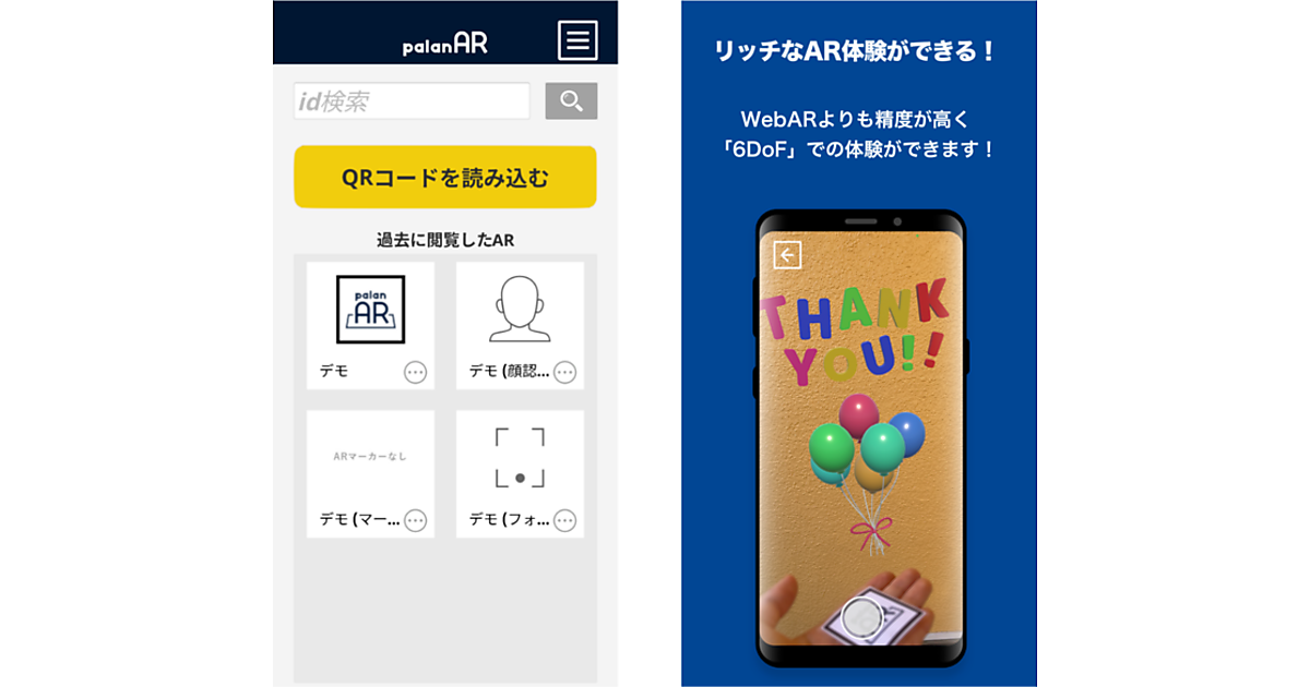 palanARは、簡単にWebARを作成できるオンラインツールで、AR名刺や商品プロモーションなどに使える。無料のフリープランと商用利用可能なプランがある。2019年の提供開始から6000以上のARが作成されたが、「WebAR上で実現できないリッチなAR体験を実現したい」とのユーザーの要望を受けてpalanARアプリ版を提供する。