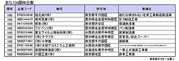 創業100周年を今年迎える企業は1,334社