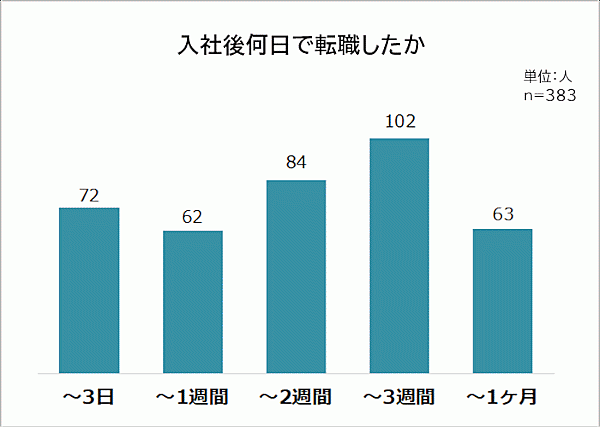 転職した人は、入社して「3日以内~2週間以内」に決断した人が過半数