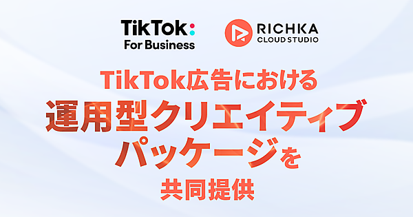 TikTokに広告出稿するプラットフォーム「TikTok For Business」と連携。広告を出す企業に対し、リチカの運用型クリエイティブクラウド「リチカ クラウドスタジオ」を活用してTikTokに最適化したクリエイティブを制作・提供する。リチカ クラウドスタジオは、デジタル広告やSNS用の動画や静止画を量産・運用できるツール。