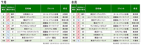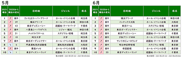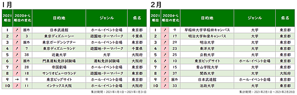 月別の動向を見ると、受験シーズンの2月に大学が増加していたが、6月には前年圏外のイベント会場が本格稼働したことで、トップ10のうち9位までがすべて圏外からのランクインとなった。
