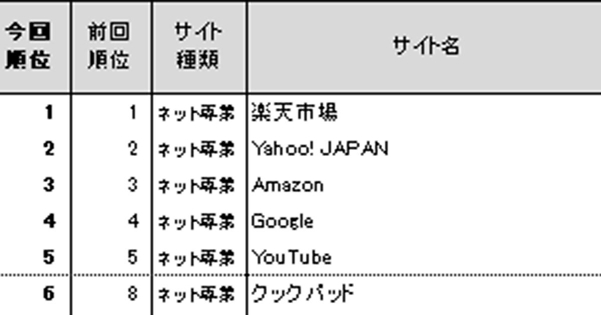 総合トップ5は同じ顔ぶれ、急上昇は「スタバ」や「じゃらん」