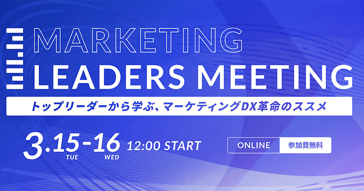 イルグルムは、トップリーダーから学ぶ、マーケティングDX革命のススメとして「MARKETING LEADERS MEETING」を3月15(火)、16日(水)12:00~15:30にオンラインで開催する。