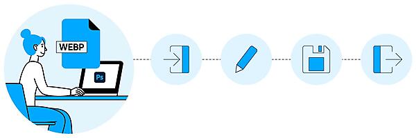 WebPはウェブページに埋め込む画像形式で、現在広く使われている「JPG」「PNG」より軽い利点がある。今回Photoshopで他の対応ファイルと同様にWebPファイルを開き、作成、編集、保存が可能になった。編集が終了したら「別名で保存」か「コピーを保存」を選択し、ドロップダウンメニューのオプションからWebPを選ぶ。