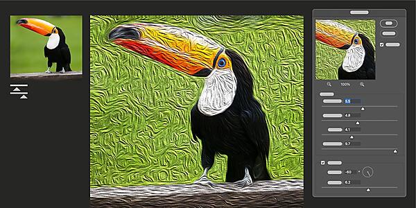WebPに完全対応するのはPhotoshopのバージョン23.2。このバージョンではほかに、写真を油彩画のような画像に変えられる「油彩フィルター」を更新した。パフォーマンスが向上し、大きなファイルを処理する際に顕著だという。さらに、「共有」ボタンが簡単に見付けられるように、右上隅に大きな青いボタンを表示する。