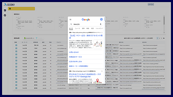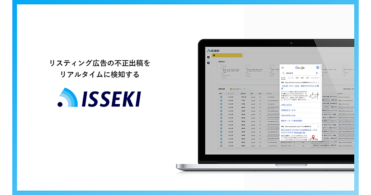 ISSEKIは、競合他社の不正出稿による企業の自社商標をリアルタイムに検知して「見える化」。企業は不正出稿を迅速に知ることができる。全国47都道府県に対応する。アドフレックスは、広告主の利益を守るための第一歩として不正出稿の検知機能を開発した。今後も健全な広告運用を実現するための機能を提供する。