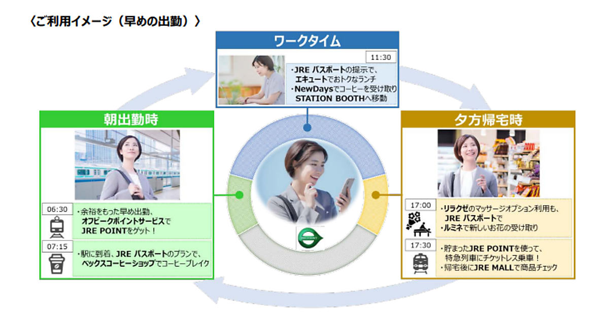 JR東日本は、2021年3月に始めた「オフピークポイントサービス」を4月1日にリニューアルし、21年7月から9月に試行したサブスクリプション(定額課金)サービス「JREパスポート」を4月1日から交通系ICカード「Suica(スイカ)」の全利用者に拡大してエキナカ・駅ビルなど16業態100店舗以上で本格展開する、と3月8日に発表した。