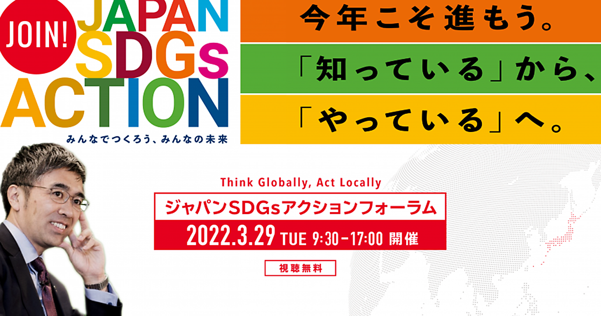 ジャパンSDGsアクション推進協議会は、「世界が求めるSDGsと日本発のSDGs~変革に向けたSDGsアクション」をテーマに、「ジャパンSDGsアクションフォーラム」を3月29日(火)にオンラインで開催する。