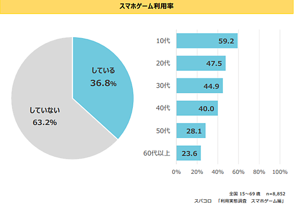 60代以上でも2割超がスマホゲームを楽しんでいる