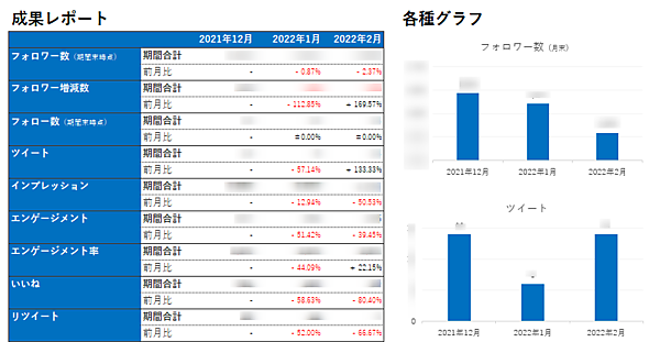 Keywordmap for SNSと連携しているTwitterアカウントの成果レポートが、全て(通常投稿と広告投稿)▽通常投稿のみの結果▽広告投稿のみの結果--から選択でき「Excel」形式でダウンロードして数値レポート作成に活用が可能。レポートの内容は、成果▽目標実績サマリー▽日時推移▽投稿一覧▽エンゲージメントの高い投稿上位3つ・低い投稿下位3つ。