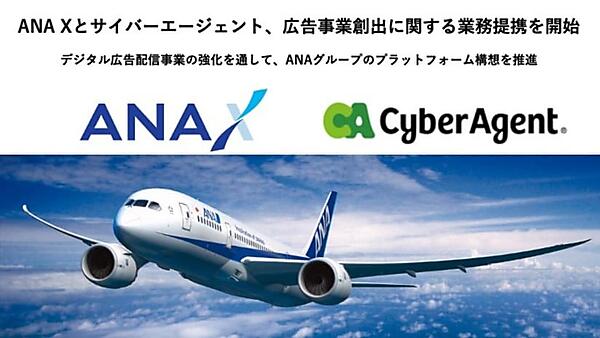 ANAホールディングス傘下でANAグループの顧客関連事業と新規事業開発を手掛けるANA Xと、インターネット広告事業のサイバーエージェントは、デジタル広告配信事業に関する業務提携契約を結んだ、と3月17日発表した。独自の広告配信システムを開発するとともに、デジタル広告配信事業を担うデジタル人材を育成する。ANAグループが進める非航空事業分野強化の一環。