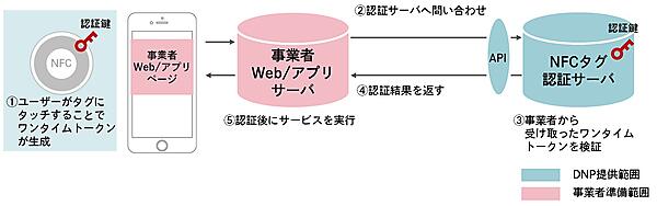 大日本印刷(DNP)は、近距離無線通信技術で非接触ICチップを搭載した「NFCタグ」の認証サービス「DNP NFCタグ認証プラットフォーム」の提供を3月14日に始めた、と3月23日に発表した。企業の施設や店舗のレジ周りに薄い小型の紙やシールで発行したNFCタグを貼付しておき、スマートフォンでタッチすると認証が完了する。決済端末などの特別な機器を使わず、従来よりもコストを低減してキャッシュレス決済を実現できる。