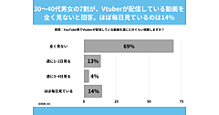 まず全体に「仕事中、仕事に関する調べ物をするときにYouTubeの動画を見ますか?」と聞くと、「YouTubeの動画は仕事では見ない」71%が最多だったが、それ以外に見ている人が3割ほど存在した。
