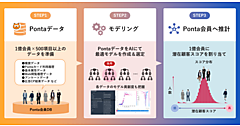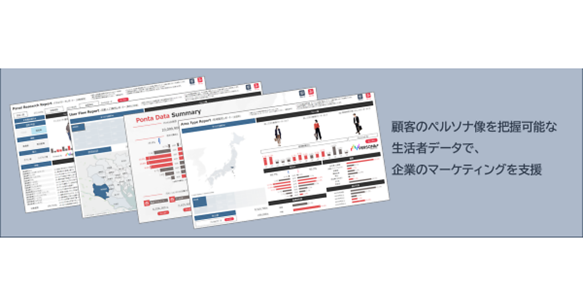 性年代や地域などの属性、リサーチによる価値観、ポイント利用データを基に、①Ponta会員の統計データのレポート②地域属性レポート③パネルリサーチレポート④流動人口属性レポートの4種類を公開した。パネルリサーチは保有自動車ごとに性年代や年収などがわかる自動車パネルのリポートで、流動人口属性は東京23区内居住で区内を移動した会員の性年代や価値観の構成比がわかる。