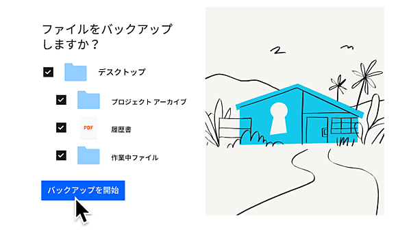 ファイルやフォルダのコピーを自動でバックアップし、クラウドからすぐに復元が可能。さまざまなファイルの保護に必要な対策が事前に講じられる。操作はシンプルで、進行状況、履歴の確認、特定ファイルの優先設定が1カ所で完結。共有ファイルから分離してバックアップするため緊急バックアップの上書きがない。復元は数回のクリックで始まる。