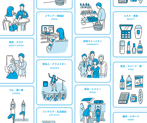 スモールビジネスでニーズが多かった業種を幅広くカバーするテンプレートを提供。対応業種は、メディア・情報誌/地域コミュニティ/著名人・クリエイター/飲食店・カフェ/美容・エステ/宿泊・レジャー/ジム・習い事/ショップ・専門店/ファッション/インテリア・生活雑貨/塾・スクール/食品・スイーツ・酒/コスメ・美容/趣味・スポーツ。各業種の特性に合わせて選定された機能と、ベースのデザインを使用してアプリを作れる。