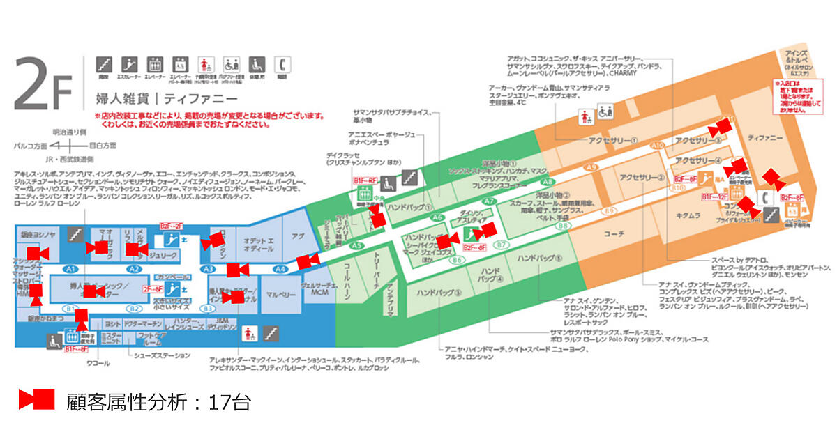 現場データ収集プラットフォーム事業のIdein(イデイン)は、同社のエッジAI(人工知能)プラットフォーム「Actcast」を活用した顧客分析の実証実験が百貨店の西武池袋本店で4月18日から始まった、と4月22日に発表した。AIカメラ29台を地下1階と2階に設置して、各フロアの来店人数と属性(性別・年代)を推定する。取得データを売場施策やテナント施策に活用する。そごう大宮店でも6月1日からAIカメラ13台で行う。