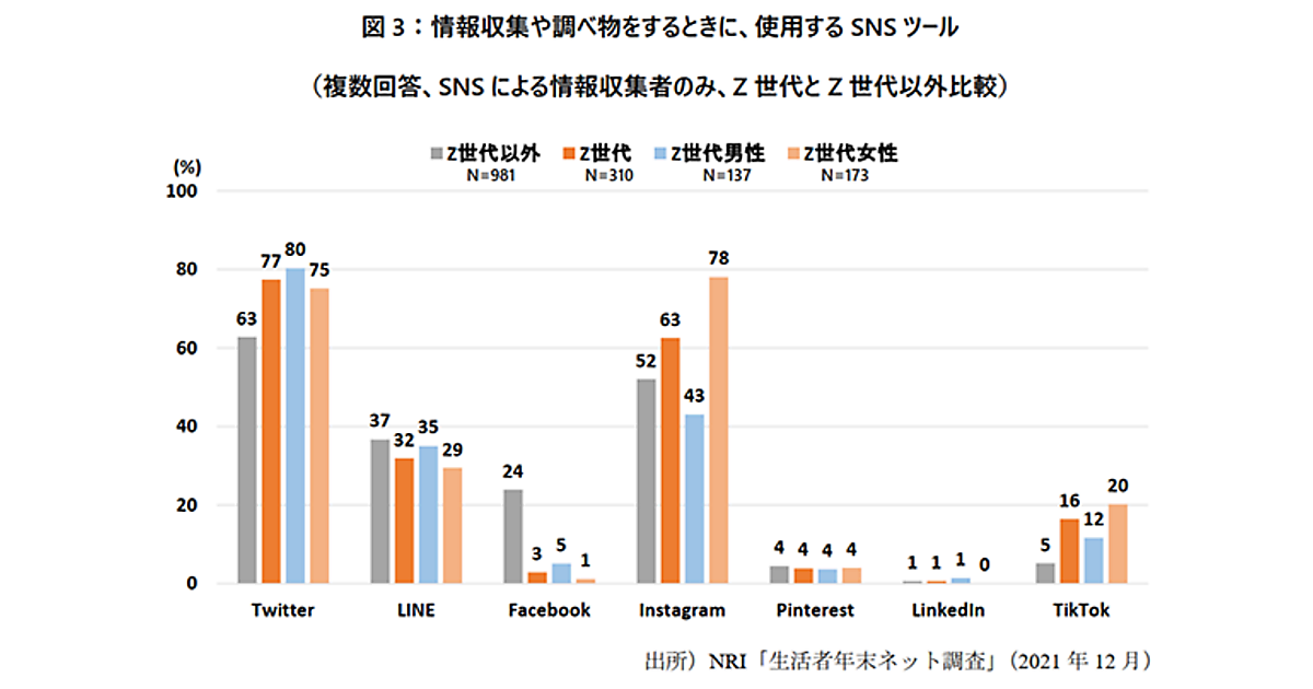 Z世代は「Twitter」「Instagram」「TikTok」の利用が増加