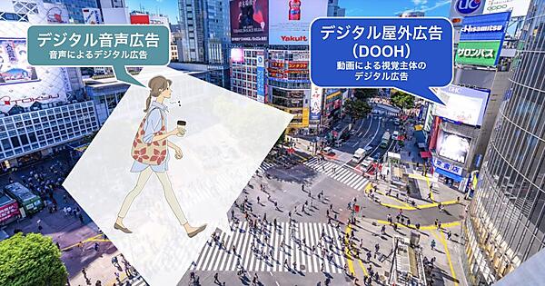 デジタル音声広告事業のオトナルは、デジタル屋外広告(DOOH)とデジタル音声広告を連携させて広告配信する広告ソリューションの提供を始めた、と4月27日発表した。エリアや天候・気温・日時などのデータを利用し、スマートフォンの画面を見ていない徒歩や電車移動中にDOOHと音声メディアに広告を配信。視覚、聴覚それぞれへの訴求が補完できる。
