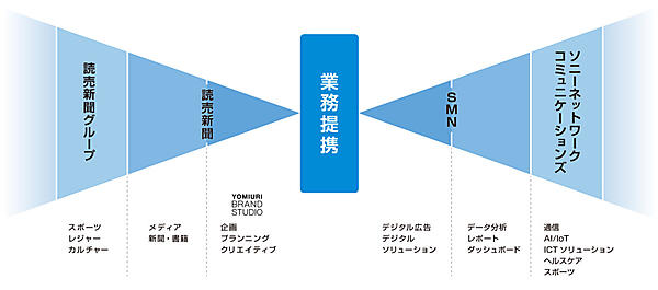 ソニーグループでマーケティング技術事業のSMNと、読売新聞東京本社は、デジタルを軸にした広告ビジネスで業務提携することで合意した、と4月27日発表した。SMNと読売新聞グループのリソースを組み合わせた協業の可能性を探る。資本提携に向けた基本合意も結んだ。読売新聞東京本社がSMN株式の5%を第三者割当増資で取得する方向で検討している。