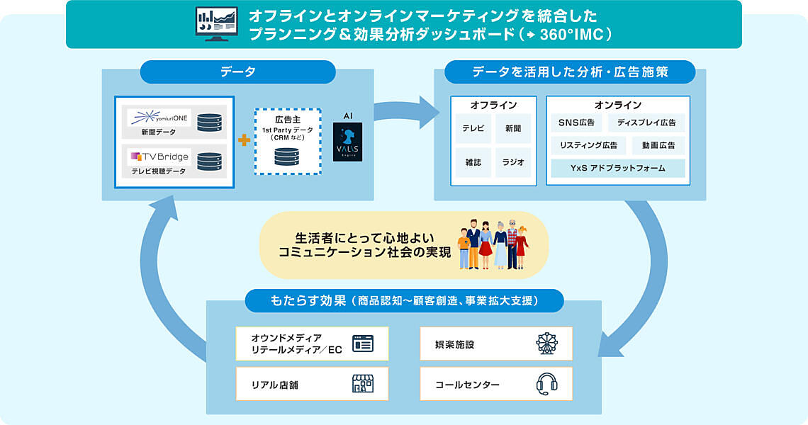 これによって、新聞広告の適した利用やテレビCMの最適な放映時間帯を割り出し、デジタル広告で届きにくいターゲットの周辺層にリーチすると同時に、デジタル広告のセグメント配信を実施。的確にコアターゲット層に届け、複数メディアを横断して相乗効果を高める統合型マーケティングを可能にする。読売新聞東京本社はSMNとの協業で広告事業に乗り出す。
