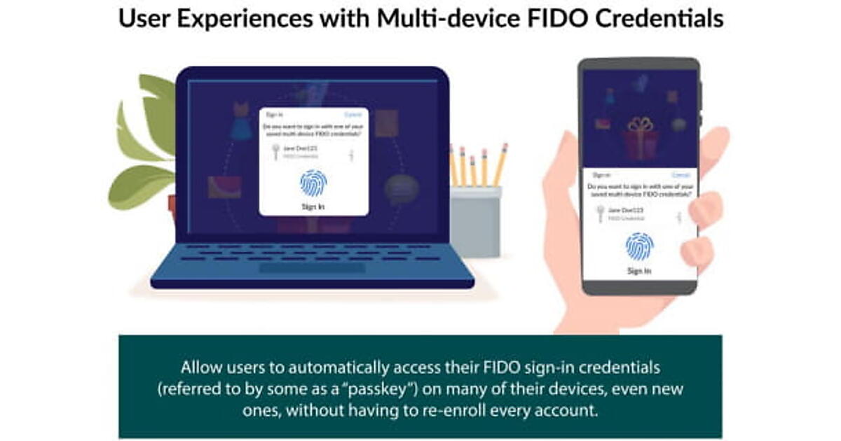 1つは、すべてのデバイスでアカウントにFIDO認証を再登録することなく、ユーザーが所有する他のデバイスや新しいデバイスで、「FIDO認証資格情報(FIDOクレデンシャル)」に自動的にアクセス可能とし、シームレスにパスワードレス認証を使えるようにする。