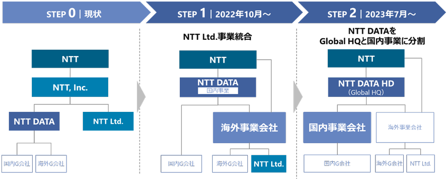 10月1日にNTTデータが55%、NTTが45%の共同出資する海外事業会社を設立して、戦略面と実務面で連携を進める。2023年7月には、国内事業会社も設立して、NTTデータの持株会社の傘下に国内事業会社と海外事業会社を配置する運営体制に移行する。NTTデータのコンサルティングやアプリケーション開発のシステムインテグレーション力と、NTT Ltd.が得意なデータセンターやネットワークのオペレーション力を組み合わせる。