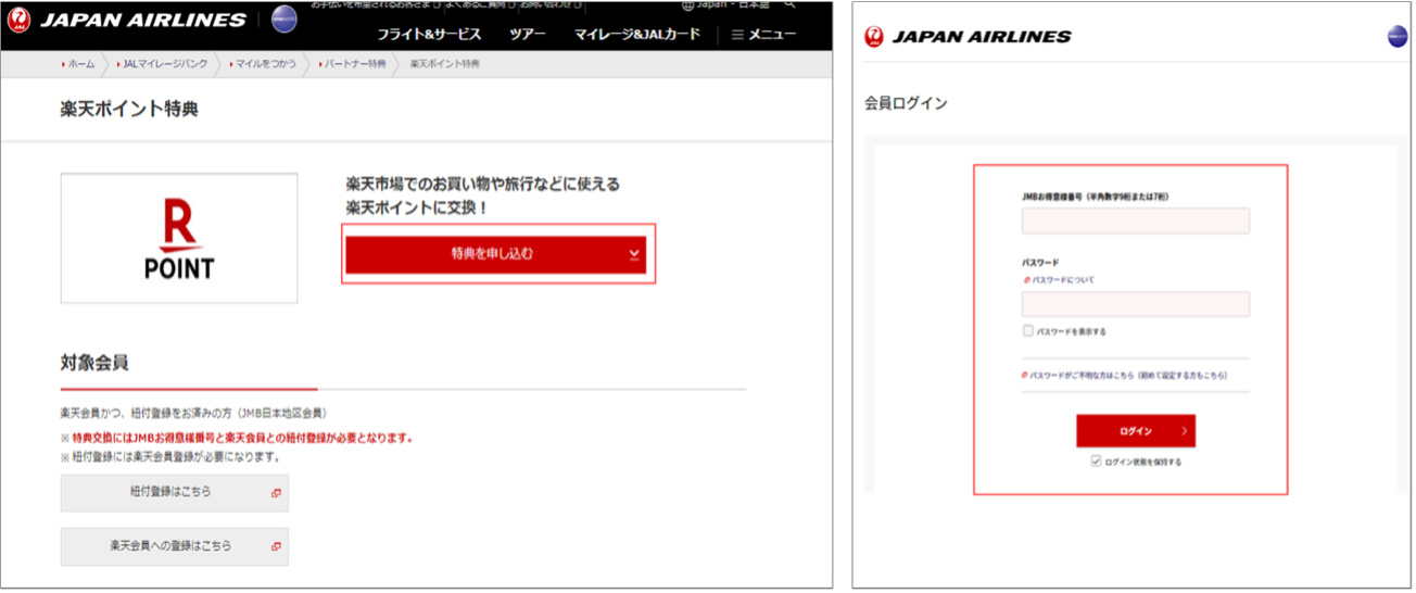 「楽天PointClub」か「JALマイレージバンク(JMB)」のサイトから専用ページで交換したいポイント数かマイル数を設定し、申請から10日以内で交換できる。楽天は、2010年からJALグループと業務提携して、「楽天トラベル」で航空券と宿泊施設をセットにした「JAL楽パック」を販売するなど、複数のサービスをJALと提供してきた。今回のポイント相互交換で楽天会員とJMB会員の相互利用を促進し、満足度の向上を図る。