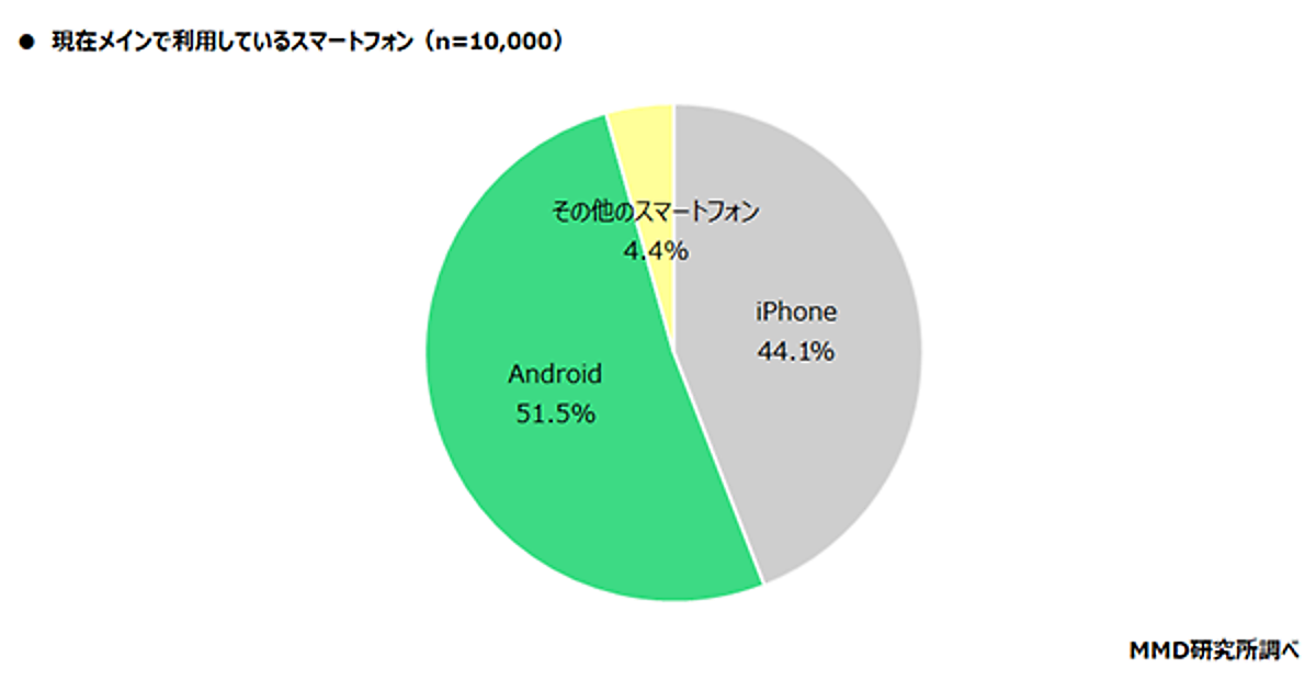 スマホのOS利用率、iPhone 44.1%、Android 51.5% 世代別で異なる利用率【MMD研究所調べ】