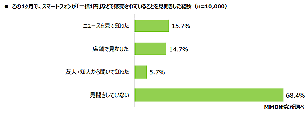 スマートフォン「一括1円」販売の認知度は31.6%、うち15.7%が「ニュースを見て知った」
