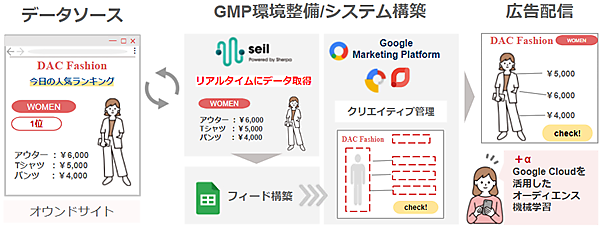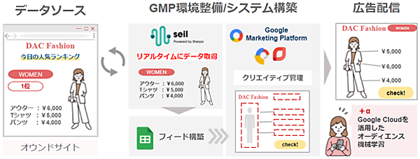 両社で展開するクリエイティブ制作・分析サービス「Rich Creative Promotion Service(RCPS)」の新たなメニューとなる。データ規制の強化に伴ってクッキーを利用したターゲティングが難しくなっていることに対応した。外部データのAPIと「Googleマーケティングプラットフォーム」のツールを使い、天気情報や位置情報など外部データ、企業サイトのデータを活用する。