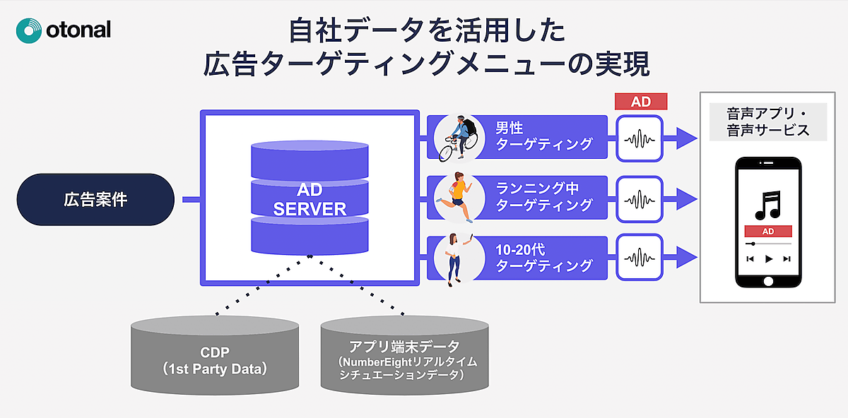 Z世代による音声SNSの利用増加や音声配信アプリの多様化、ラジオ局のネット限定音声番組など音声メディアの活性化で音声広告の成長が期待されている。オトナルのサービスを活用して音声広告枠を設けて、サブスリプション(月額課金)サービスの無料ユーザーに有料プランとの差別化を実現できる。1stパーティデータを活用した自社広告をアプリ内配信して、課金傾向が高いリスナーに有料プランを勧めて有料ユーザー拡大できる。