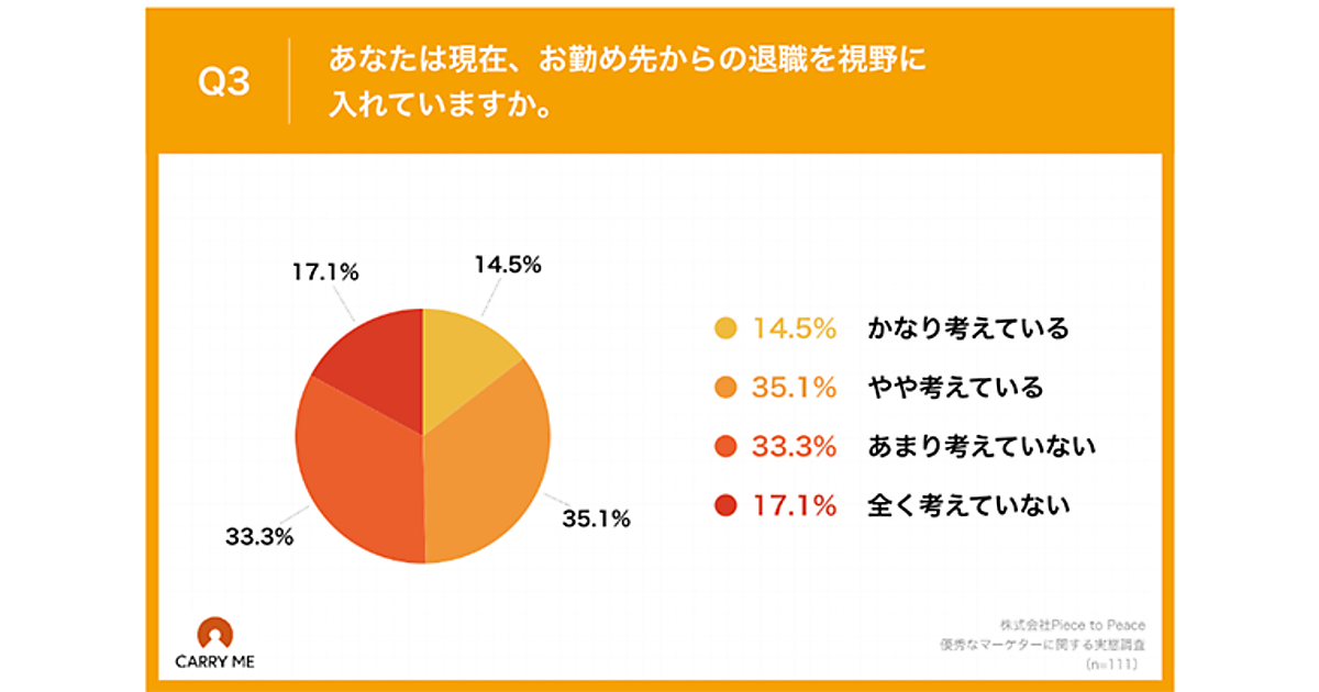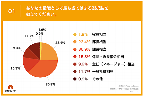 人材マッチングサービス「CARRY ME」を運営するPiece to Peaceは、年収800万円以上のマーケター111名を対象に実態調査を実施した。