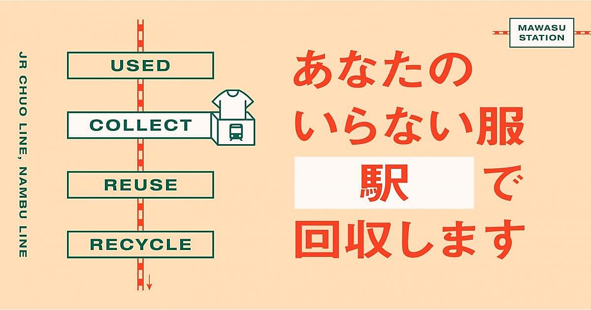 JR東日本グループでJR中央線コミュニティデザイン(JRCCD)と、JR東日本スタートアップは、アパレルブランド「ALL YOURS」を運営するオールユアーズと協業し、不要な衣服を回収して再利用・資源化する「MAWASU STATION」の実証実験を7月1日から始める、と6月23日発表した。JRCCDが運営受託するJR中央線武蔵境駅、東小金井駅、西国分寺駅、JR南武線稲城長沼駅の4駅と、JRCCDの駅ビル「セレオ国分寺」で回収する。