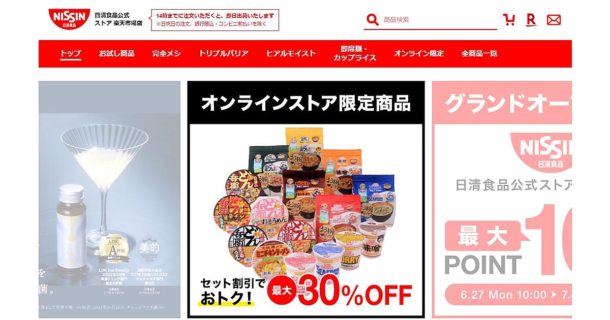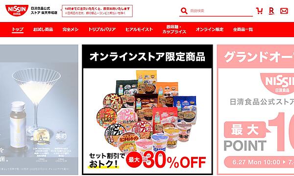 日清食品は自社グループで「日清食品グループオンラインスト」を展開しているが、今回新たに楽天市場に公式店舗を開いた。日清食品公式ストア楽天市場では、3980円(税込み)以上の商品購入で送料を無料にする。買い物をすることで楽天グループのポイントプログラム「楽天ポイント」をためることができ、支払いに楽天ポイントを使うことも可能。