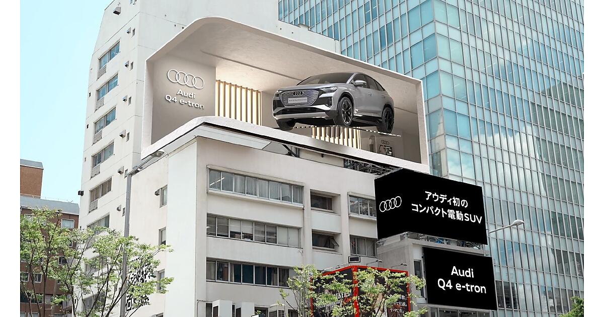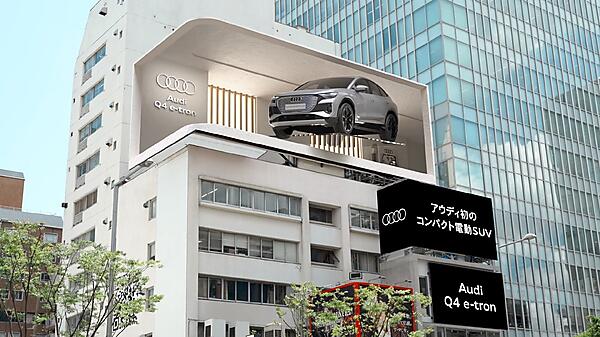 屋外広告専門広告会社のヒットは、東京・表参道交差点近くのビルに設置している大型屋外ビジョン「OMOSANシンクロ」をリニューアルし、6月27日に正式稼働を始めた、と6月29日発表した。リニューアルの第1弾でドイツの高級車「アウディ」初のコンパクト電動SUV(スポーツタイプ多目的車)「Audi Q4 e-tron」の肉眼3Dクリエイティブを放映している。7月3日まで。