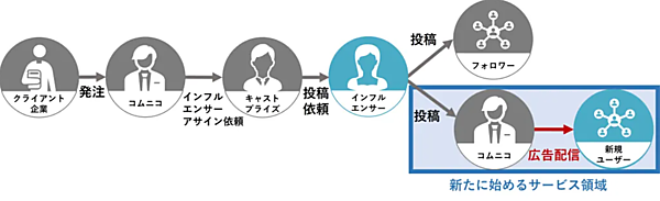 SNSマーケティング支援事業でラバブルマーケティンググループ(LMG)のコムニコは、インフルエンサーとコラボレーションした広告配信サービスを始める、と7月7日に発表した。従来もインフルエンサーのPR投稿を用いて商品やサービスを訴求してきたが、インフルエンサーが投稿するだけでなく、その投稿内容を広告として配信することができる。