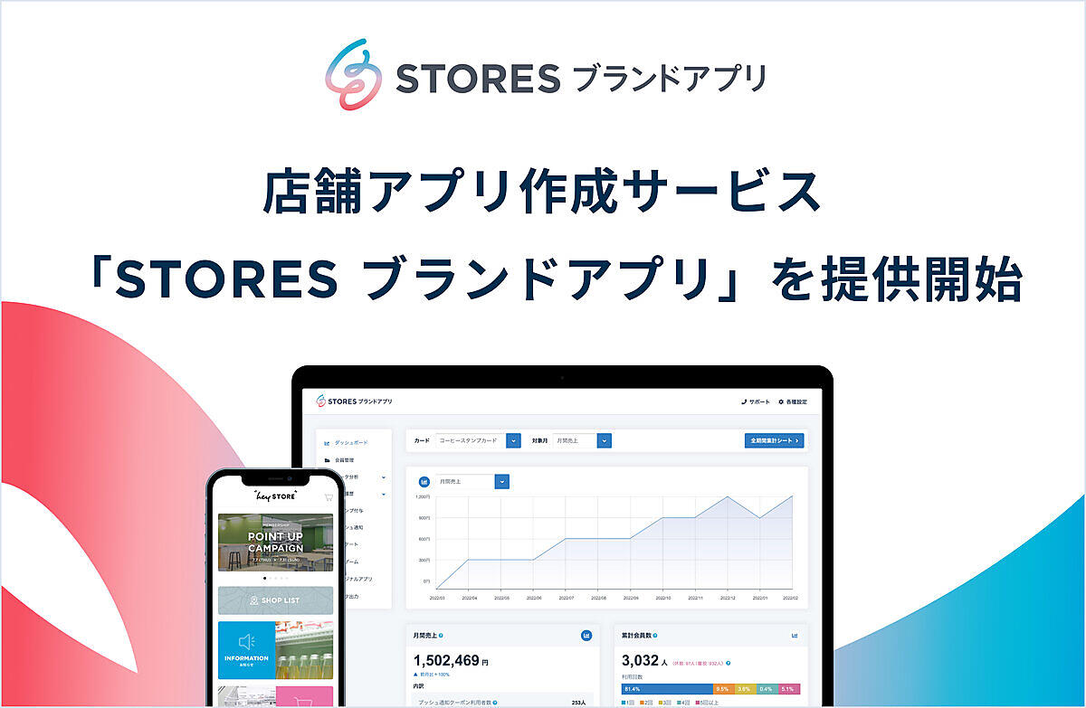 ネットショップ開設の「STORES(ストアーズ)プラットフォーム」運営のへイ(hey)は、店舗アプリを作成できるサービス「STORESブランドアプリ(ストアーズブランドアプリ)」の提供を始める、と7月7日に発表した。実店舗とネットショップの顧客管理を統合して、OMO(オンラインとオフラインの融合)型の店舗運営を実現する。