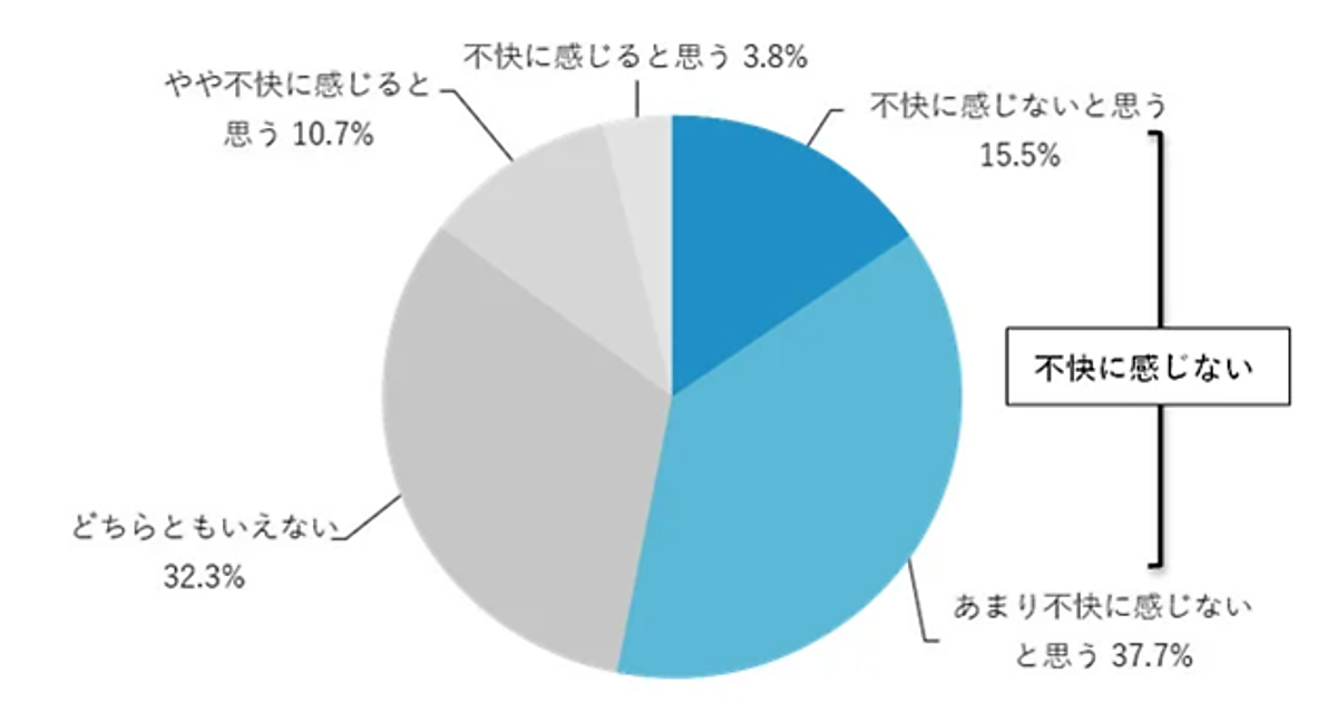 「プレイスメント化された動画」と「されていない動画」を視聴した上で、「プレイスメント化された動画を不快に感じるか」を聞くと、「不快に感じないと思う(15.5%)」「あまり不快に感じないと思う(37.7%)」という結果になった。