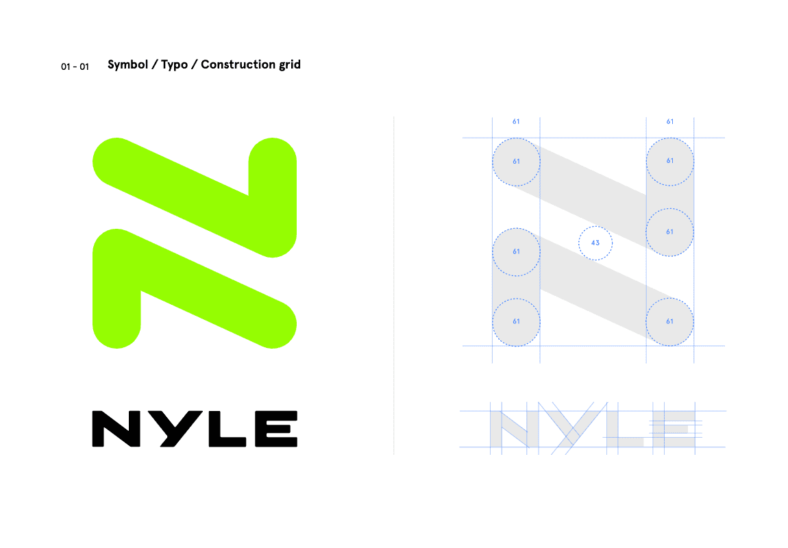 ロゴのコンセプトは「TRANSFORMATION-ARROWS」で、2本の矢をモチーフにナイル(NYLE)の頭文字「N」を構成している。矢は「本質を射抜く力」と「変革を起こす力」を象徴し、社会課題や顧客インサイト(深層心理)を正確に捉え、より良い方向に変えていく意志を込めた、としている。