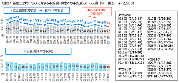 クロス・マーケティングは、「新型コロナウイルス生活影響度調査」の最新結果を発表した(2022年5月・第31回)。ほぼ月次で実施している調査で、今回は、マスク着用に対する政府見解や基本的対処方針の変更が発表された後の5月27日~29日に調査を行った。