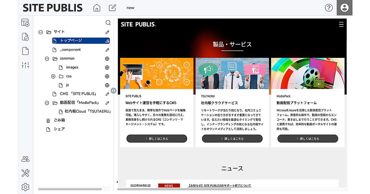 コミュニケーションソフト・サービス開発・販売のソフトフロントホールディングスの子会社でウェブ関連製品・サービス企画・開発のサイト・パブリスは、同社のCMS(コンテンツマネジメントシステム)「SITE PUBLIS」の新版「SITE PUBLIS Connect」 の提供を8月1日に始める、と7月14日発表した。CMSを進化させた“コネクティングマネジメントシステム”として展開する。