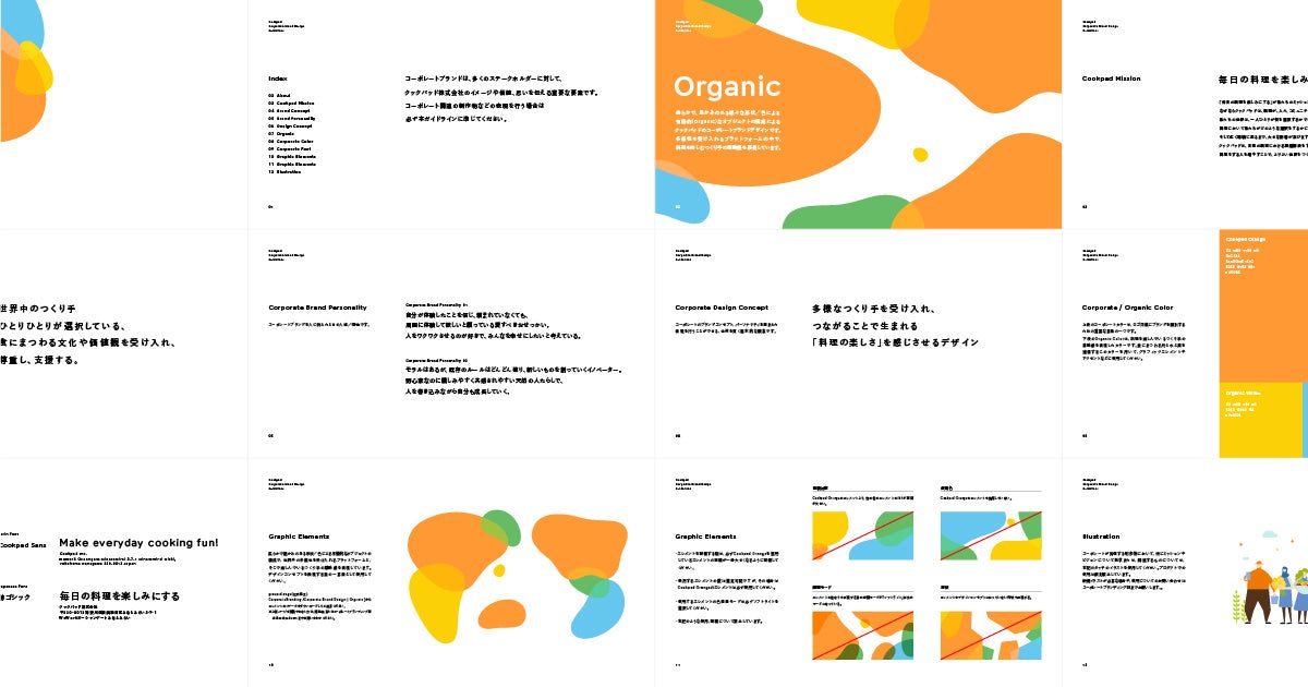 コーポレートブランドデザインは、柔らかで温かみのあるさまざまな形状/色の有機的(Organic)な色面で構成。多様性を受け入れるクックパッドのプラットフォームの中で、つくり手が楽しんでいる躍動感を表現し、一新したコーポレートサイトにも採用した。