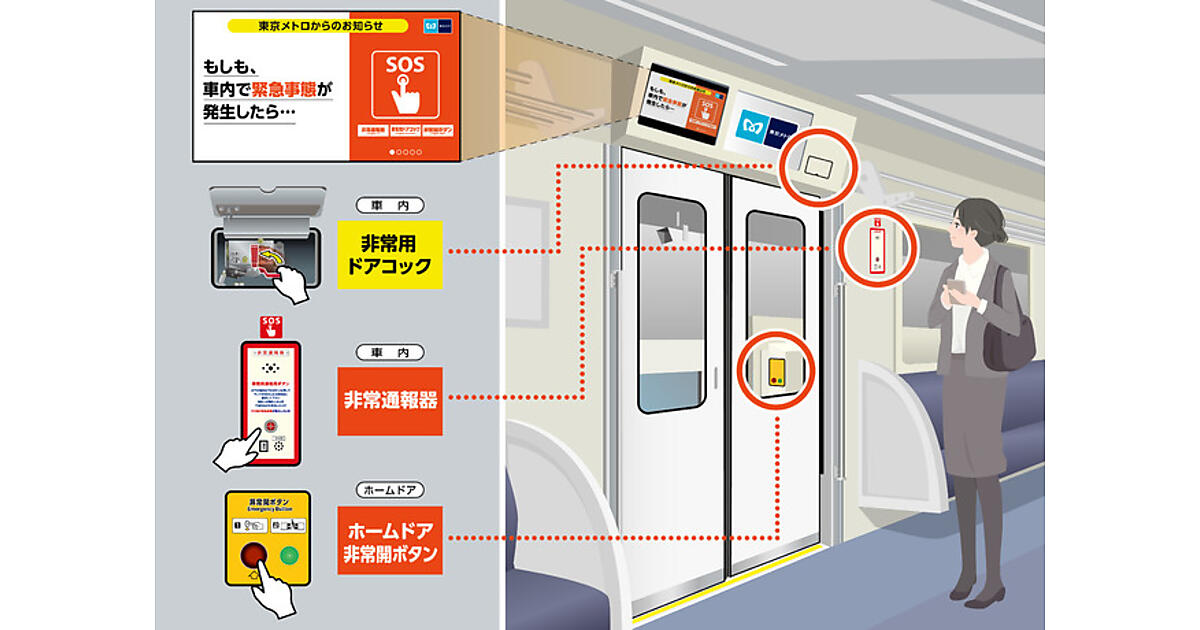 6月に公表された国土交通省技術基準検討会の「車内非常用設備等の表示に関するガイドライン」を踏まえ、東京メトロの路線をより安心して利用してもらうことを目的に放映を開始した。非常用設備は非常通報器、非常用ドアコック、ホームドアを指す。映像では、これらの設置位置や使用法を分かりやすく紹介している。