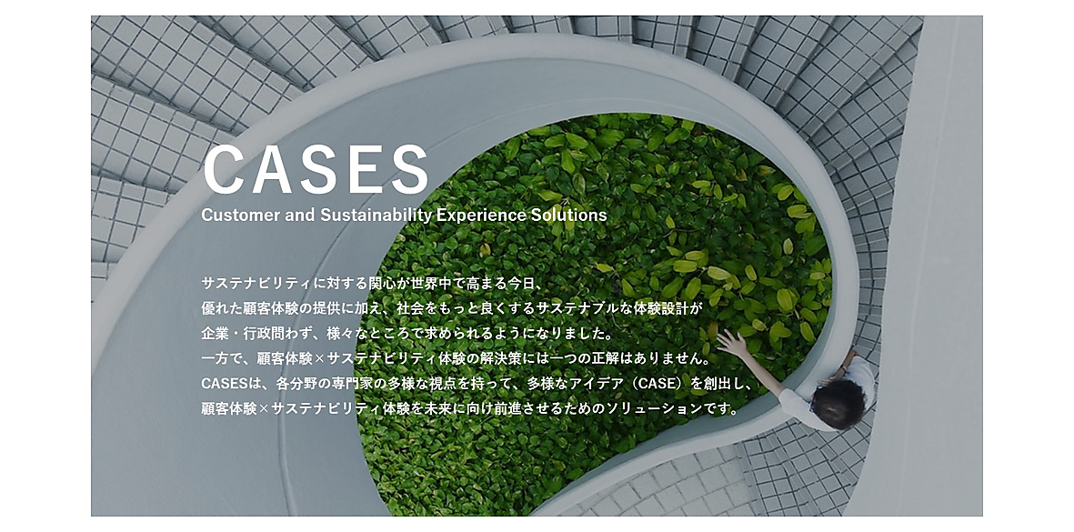 CASESでは、現状のCXを顧客満足度とサステナビリティから分析し、解決策の方向性を特定。サステナブルな行動を促してSXとCXのギャップを解消する施策を検討する。サステナビリティへのアプローチを中心にしながら、デジタル体験▽人の行動特性▽デザイン▽空間--の4つの視点からアプローチ。生活者が自ら行動したいと思える仕組み・仕掛けを開発する。
