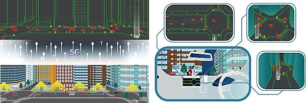 走行する車中でさまざまな視点の仮想マップを確認して、広範囲な危険情報を事前に予見できるようになる。ドコモは5G環境構築と画像認識エンジン、クラウドサーバー「docomo MEC」を提供。AGCは5Gガラスアンテナ「WAVEATTOCH」の提供と実験全体をマネジメントした。NTT Comがシステム構築し、トヨタは実験のコンセプトの検討と基本設計、静岡県裾野市の実験場を提供し、将来展開・実用化の検討を担った。