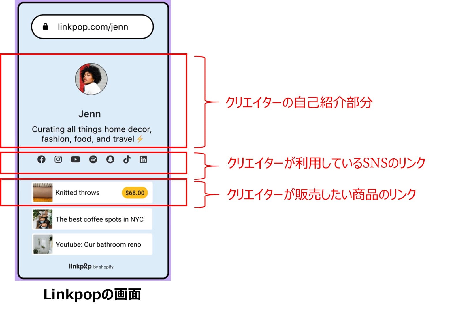 スタータープランは主にクリエイターや新規事業者向けで、ウェブサイトがなくても、テンプレートに沿って商品・サービスの画像と説明を追加することでオンラインショップが開設できる。さまざまなSNSで商品のリンク共有も可能。SNSのプロフィール欄から他のウェブサイトのURLに移動するリンクを指すリンクインバイオのツール「Linkpop」も備える。